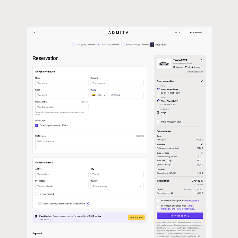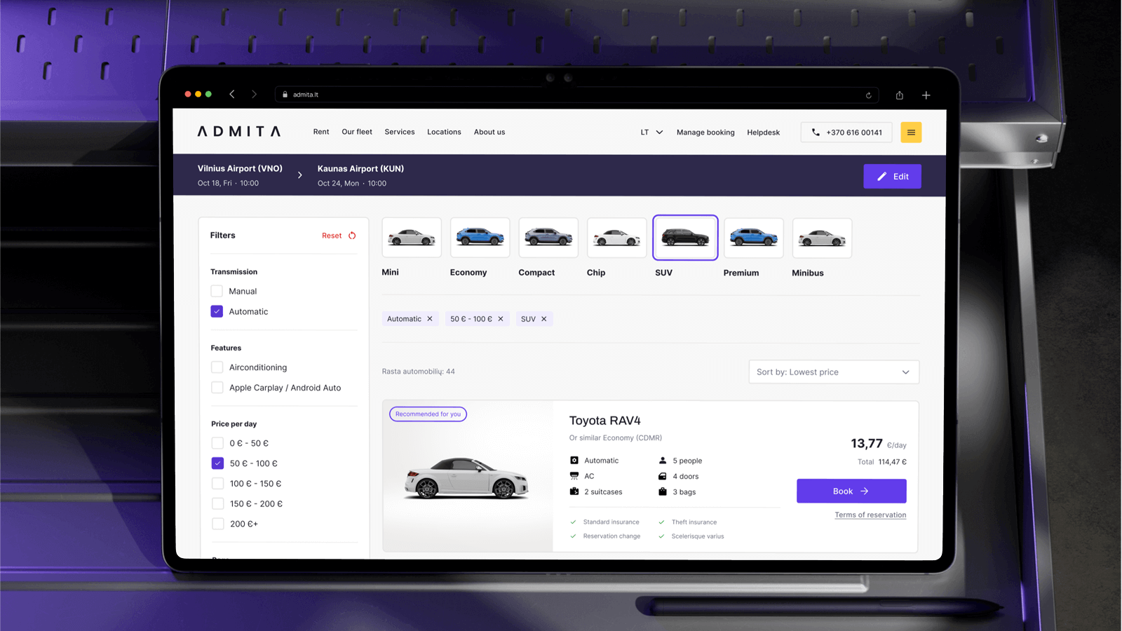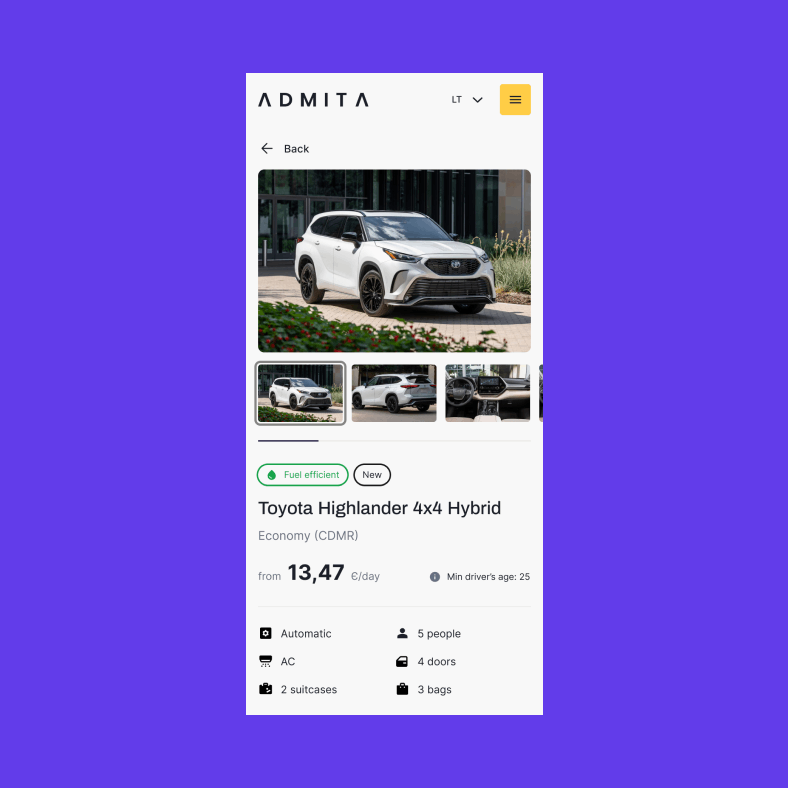 Admita – vietinis vardas, kuris drąsiai konkuruoja su tarptautiniais automobilių nuomos gigantais. Kai automobilio reikia čia ir dabar, vartotojas nenori trikdžių – jis nori aiškaus pasirinkimo, sklandaus kelio iki rezervacijos ir jausmo, kad viskas užtikrinta. Būtent tokiai patirčiai ir sukūrėme naujus Admita skaitmeninius namus.